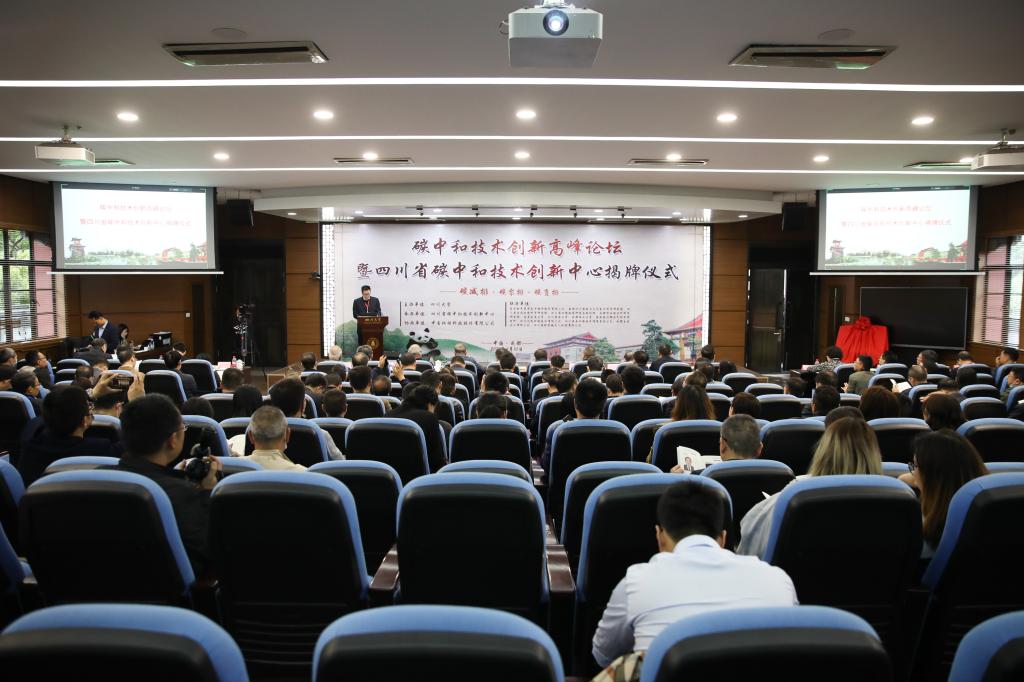 在与会嘉宾的共同见证下,田云辉副厅长和褚良银副董事长为四川省碳中和技术创新中心揭牌。