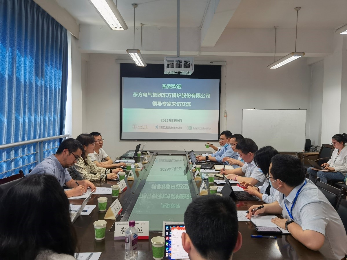2022年5月9日,东方电气集团东方锅炉股份有限公司(以下简称“东方锅炉”)来太阳集团tcy8722与中心就资源碳中和核心关键技术进行交流。东方锅炉聂立副总经理、韦耿副部长、薛燕辉副部长、陈虹主任、杨欢工程师、杨枨钧工程师,太阳集团tcy8722科研院高德友副部长、建环公司刘敏副经理,中心代忠德教授、马生贵副研究员、常玉龙助理研究员、靳紫恒助理研究员等20余人参加交流。交流会由中心常务副主任江霞教授主持。