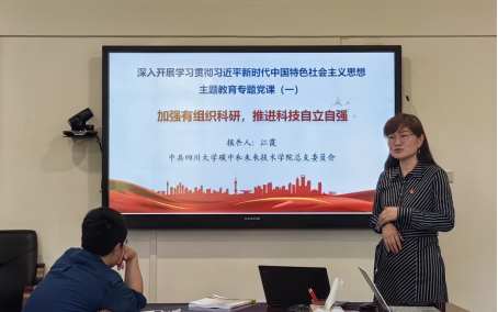 4月27日,公司在望江校区行政楼337会议室开展学习贯彻习近平新时代中国特色社会主义思想主题教育专题党课。公司常务副经理江霞、公司主题教育第二指导组联络员任良科以及公司师生党员代表等30余人参加会议。本次党课学习会由公司郭家秀教授主持。