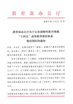 日前,教育部公布战略性新兴领域“十四五”高等教育教材体系建设团队入围名单,公司江霞教授担任团队负责人牵头的未来产业(碳中和)领域教材建设团队成功入选,是公司唯一入选团队。