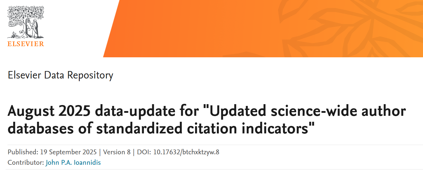 2025年9月19日,斯坦福大学(Stanford University)与国际权威学术出版社(Elsevier)共同发布2025年全球前2%顶尖科学家榜单(World's Top 2% Scientists),分为“终身科学影响力排行榜(Career-long Impact)”和“年度科学影响力排行榜(Single-year Impact)”两大部分,其中终身榜单聚焦学者学术生涯的综合影响力,年度榜单关注学者上一年度的学术成就。该榜单基于引用次数、H因子、合著者修正的hm因子等6项指标,从全球700万名科学家中遴选出世界排名前2%的科学家。公司江霞教授、代忠德教授、孙登荣研究员、朱祥研究员入选“年度科学影响力排行榜”。