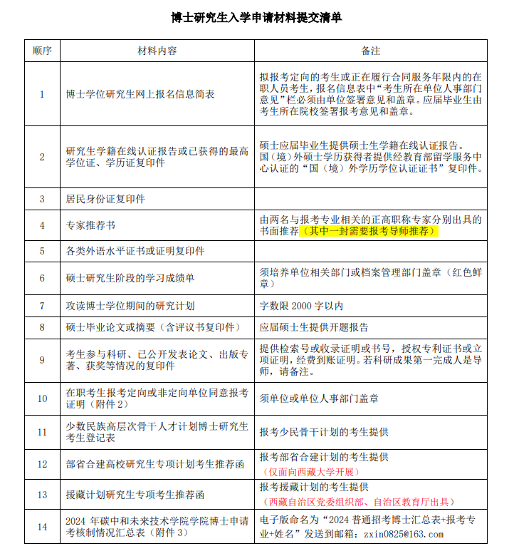 符合报考条件的人员须下载 “提交博士研究生入学申请材料自查表”(附件1),按顺序整理材料,并在2023年12月15日17点前将申请材料和自查表寄送达公司研究生招生工作办公室(联系地址:太阳集团tcy8722望江校区行政楼太阳集团tcy8722605办公室;联系人:郑老师;联系电话:028-85464677;邮编:610000)。