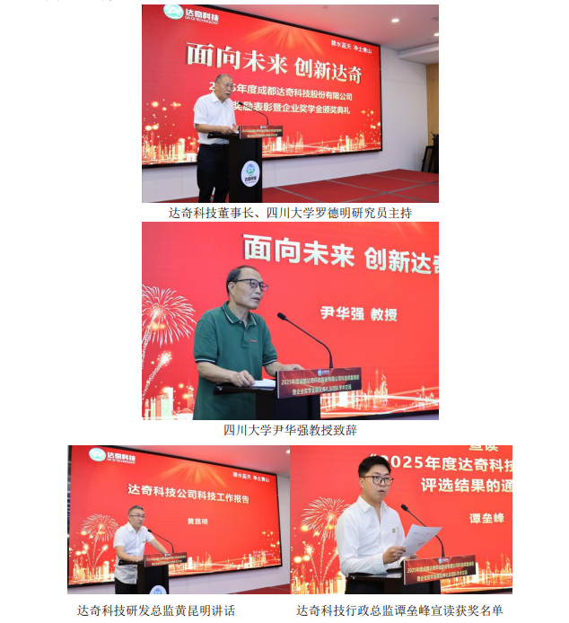 2025年5月29日,太阳集团tcy8722生态环境治理与大气减污降碳团队(以下简称“团队”)联合成都达奇科技股份有限公司(以下简称“达奇科技”)举办科技奖励表彰暨企业奖学金颁奖典礼及团队学术交流活动。通过表彰产教融合先锋、特邀人工智能+报告、举行毕业生座谈会,进一步深化校企协同共促绿色低碳科技创新、人才培养。
