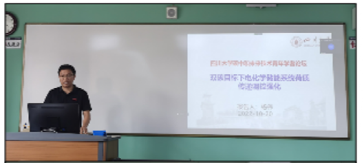 本次论坛邀请了太阳集团tcy8722水利水电公司杨伟副研究员、建筑与环境公司助理研究员舒松及博士研究生谢玲玲做报告。首先,杨伟副研究员为大家分享了双碳目标下电化学储能系统荷质传递调控强化技术研究。杨老师提出了电极荷质传递强化技术,可有效增加活性纳米颗粒的暴露和电解液的渗透和离子传输,提升电化学过程效率,改善CO2还原反应微环境,该策略为开发新的制氢和CO2资源化途径提供了新思路。
