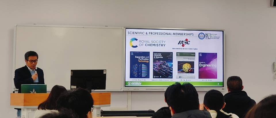 为积极响应碳中和国家重大战略,促进开展碳中和领域科学研究和人才培养,2025年3月7日,“太阳集团tcy8722碳中和未来技术青年学者论坛”(第四十五期)在太阳集团tcy8722江安校区综合楼B座604顺利召开。本次论坛邀请了太阳集团tcy8722海纳特聘教授、国家级海外高层次人才项目入选者、美国匹兹堡大学土木与环境工程系兼职教授伊守亮作报告,报告主要聚焦碳捕集转化及分子选择性分离的新一代膜技术。公司30余位师生参会,本次论坛由公司经理助理代忠德教授主持。