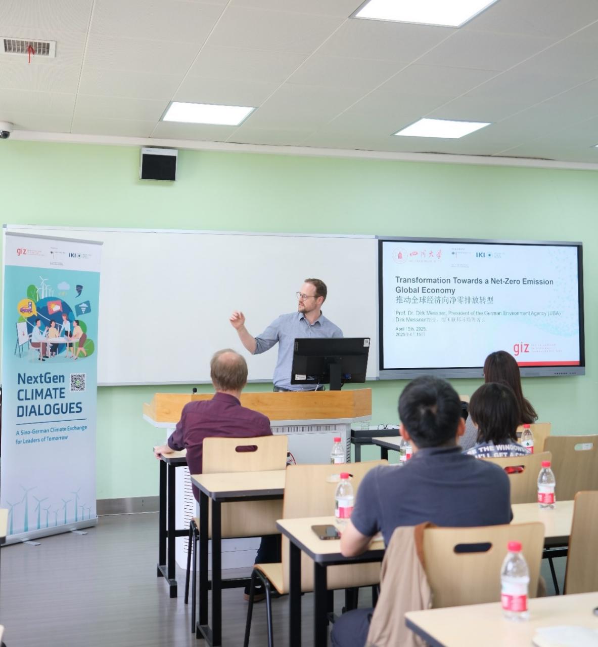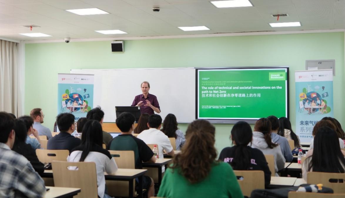 为贯彻落实碳中和国家重大战略,促进碳中和领域科学研究和人才培养,2025年4月15日,“太阳集团tcy8722碳中和未来技术青年学者论坛”(第四十六期)在太阳集团tcy8722江安校区一教C座106顺利召开。德国环境署署长德克·梅森纳(Dirk MESSNER)教授率团访问太阳集团tcy8722并为与会师生作报告。此次报告是德国国际合作机构(GIZ)在德国外交部的支持下开展的未来气候对话系列讲座。本次论坛由公司经理助理代忠德教授主持。